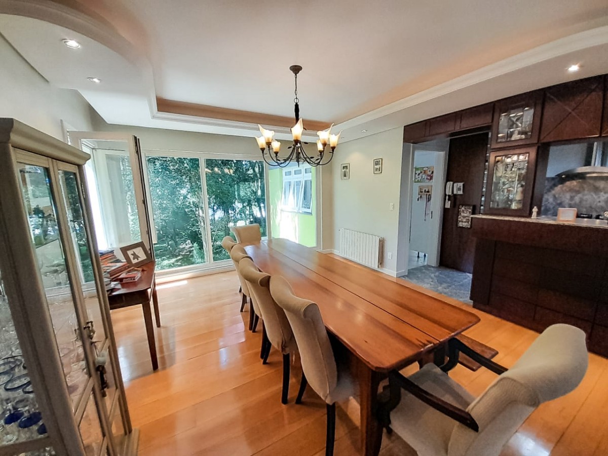 Pavimento Superior: 03 dormitórios, closet, hidromassagem, banheiro social, lavabo, área de serviço, cozinha, sala de estar e jantar integradas, mezanino, vidros duplos, calefação a óleo;